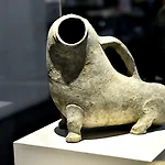 호랑이 모양을 한 남성 소변기로 손으로 들고 다닐 수 있도록 호랑이의 등 부분에 손잡이가 달려있다 입을 크게 벌리고 먼 곳을 바라보는 호랑이 모습을 하고 있는 남성용 토기 요강이다. 부여 군수리에서 출토된 호자(虎子)는 7세기 백제시대 때 만들어진 것으로 중국의 호자를 참고하여..