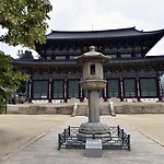 신라의 전형적인 팔각석등의 대표적인 양식으로 조각수법으로 보아 혜공왕(765~780)대에 진표율사가 법주사를 중창하던 때의 작품으로 추정된다. 4매로 조합된 사각형 지대석 위에 팔각의 기대 각 면에 안상 장식을 하였다. 하대와 상대에 장식된 단판8엽의 연화 내에는 화려한 보상화문을..