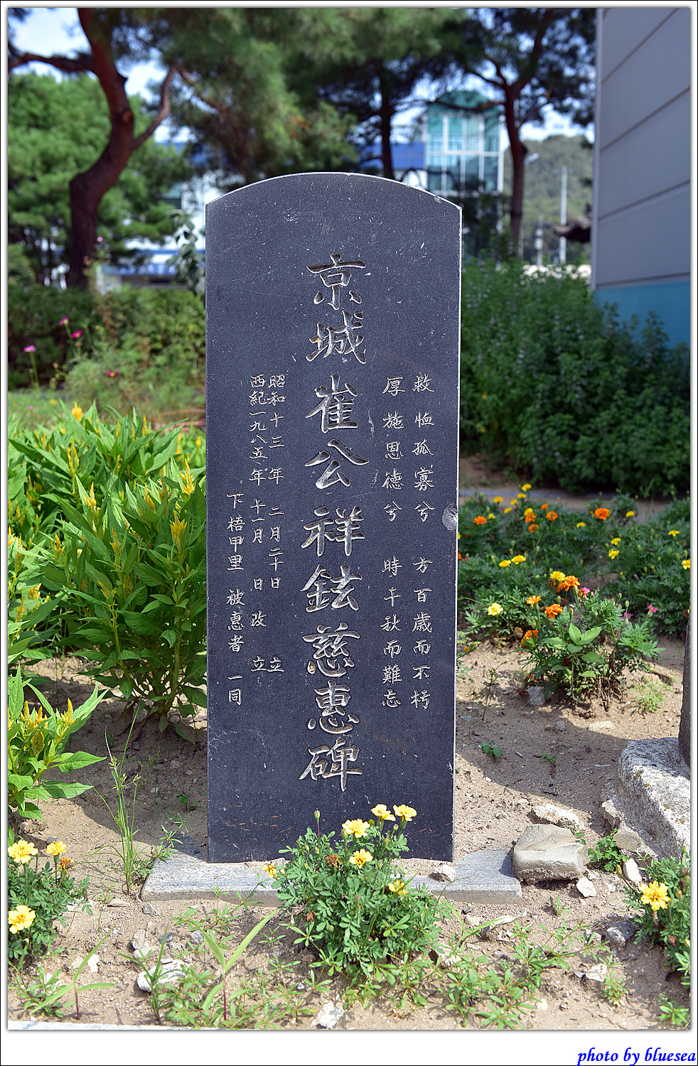 원래의 비석은 훼손되었으며 그 후인 1985년에 하오갑리피혜자일동( 下梧甲里被惠者一同 )의 이름으로 새로 세웠습니다.